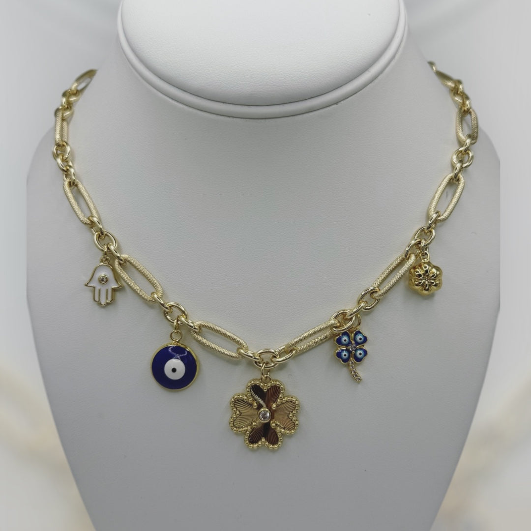 Collar multi dijes de protección laminado 14k cadena size 18